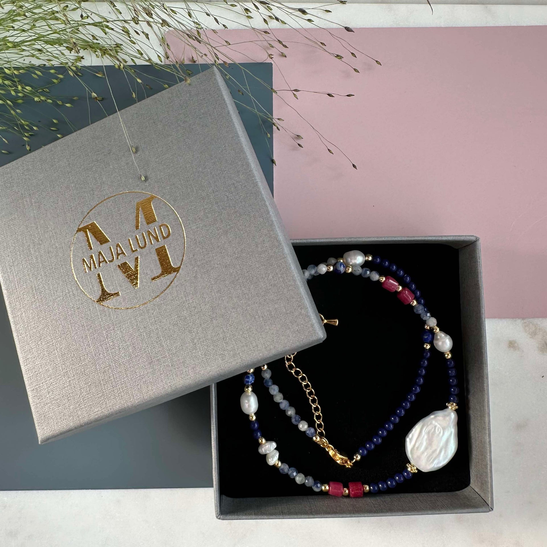 - Halskjedet er laget av ekte og unike ferskvannsperler
