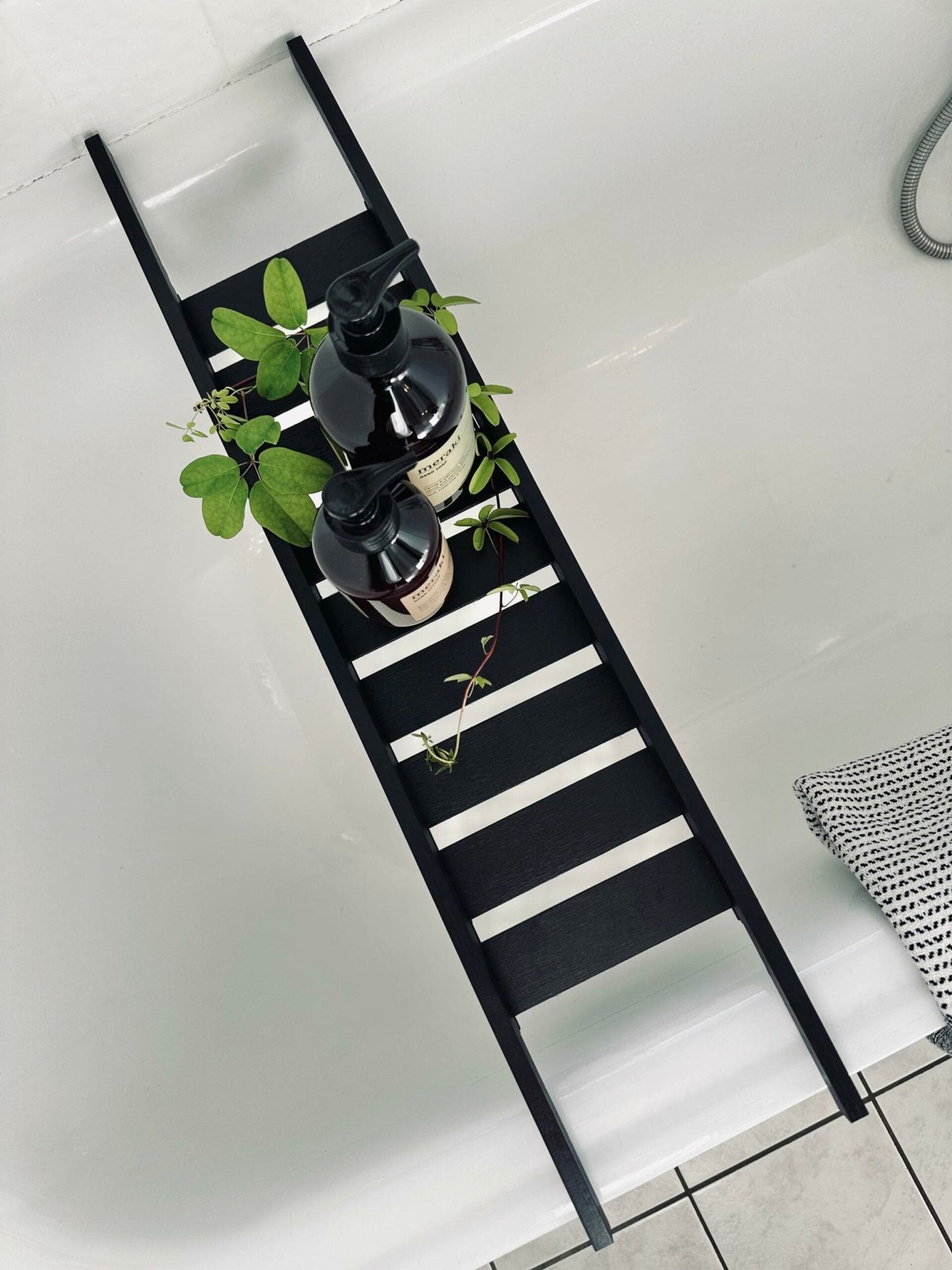 - Badekarhylle er laget av bambus