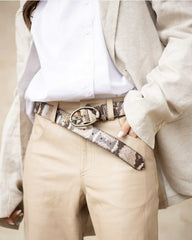 Forestill deg hvordan dette slangeskinnbeltet kan gi antrekket ditt et løft, enten du er på vei til et viktig møte eller en uformell sammenkomst. Gjør hverdagen litt mer elegant, og føl deg selvsikker med et belte som gir både stil og funksjonalitet i hverdagen.