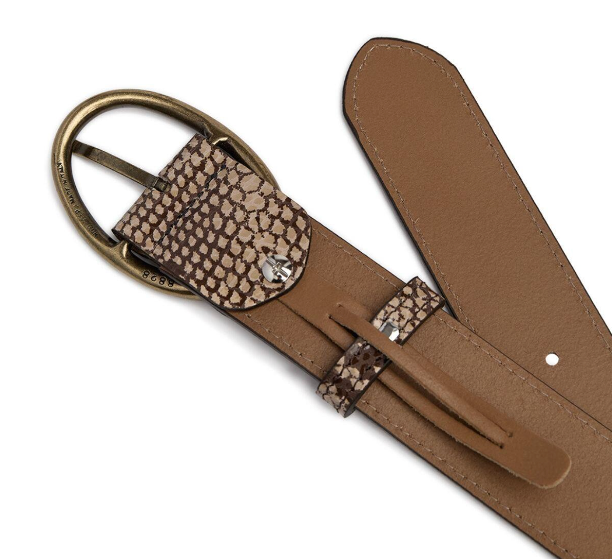 - Beltet har slangeskinnprægning