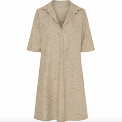 Kjole Bernice Camel er en allsidig kjole, som passer godt både til hverdag og mer festlige anledninger. Den beige fargen gir et rolig, enkelt uttrykk, som er lett å style opp eller ned med dine valg av sko og accessories. Kjolen har regular pasform og et struktur/vevd mønster som tilfører et diskret spill i overflaten.