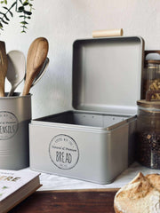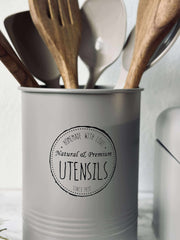 Denne bestikkholderen i beige metall samler bestikk og små kjøkkenredskaper på en enkel og oversiktlig måte. Det ensfargede uttrykket gjør den enkel å kombinere med både lyse og mer fargerike kjøkkendetaljer. Formatet er kompakt og passer godt til daglig bruk, når du ønsker å ha de mest brukte delene lett tilgjengelig.