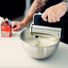 - Røreskålsettet inkluderer tre rustfrie skåler med BPA-frie lokk