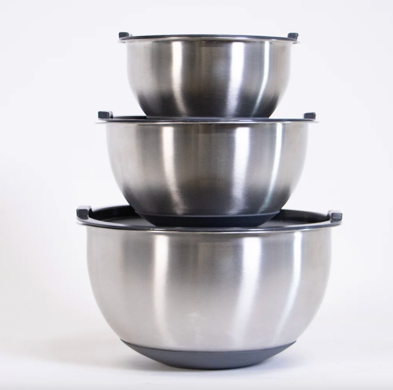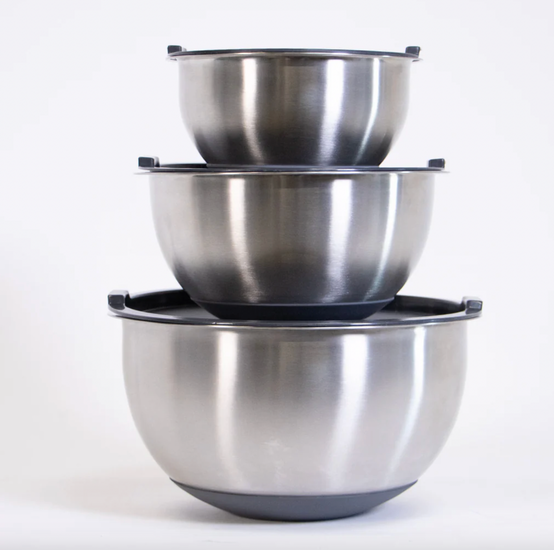 Blandeskål med silikonbunn og lokk, Sett med 3 stk