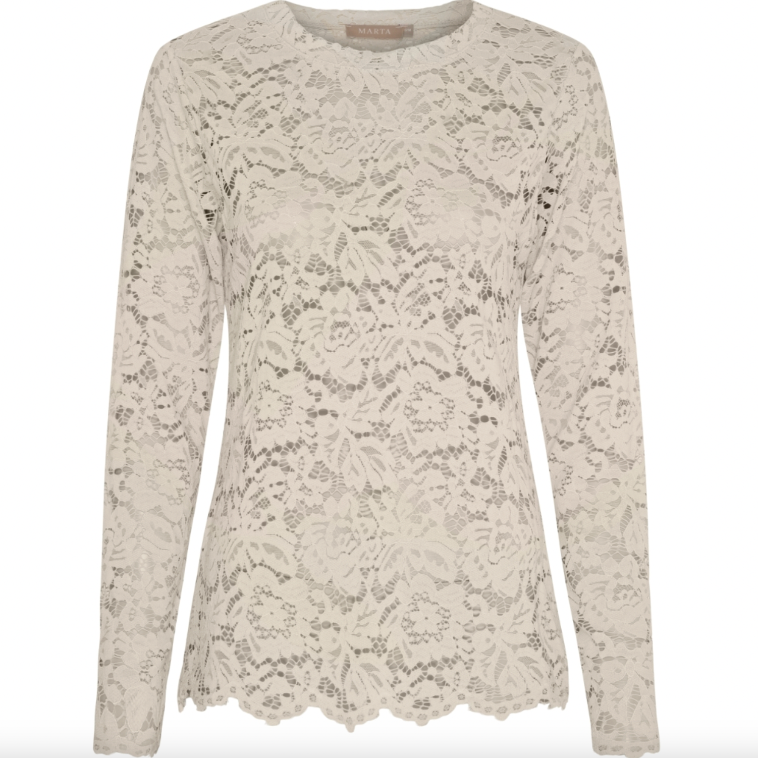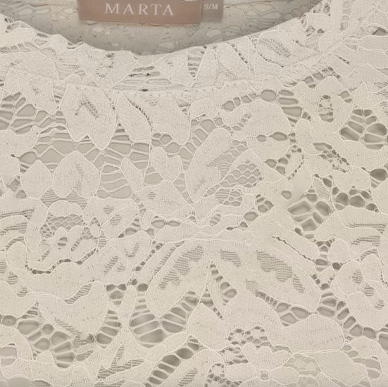 Style den med et skjørt eller et par bukser for et gjennomført, elegant look. Hvis du leter etter en hvit blondegenser eller en hvit blondetopp, er denne modellen et opplagt alternativ i en myk beige nyanse.
