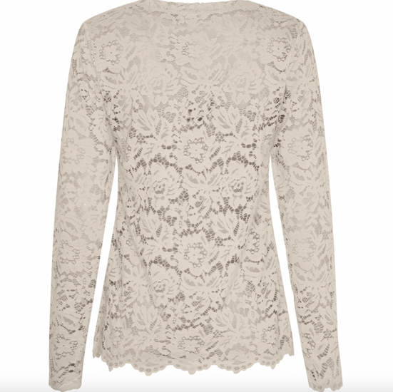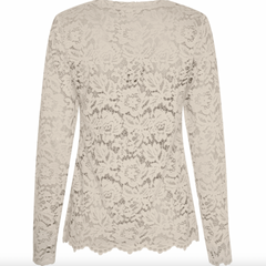 Bluse - Milley new beige er en elegant, langermet blondebluse i beige med et blomstret uttrykk. Den har rund hals og en slim passform, som gir et tettere, feminint uttrykk. En fin overdel når du vil tilføre lett struktur og et sofistikert preg til antrekket ditt.