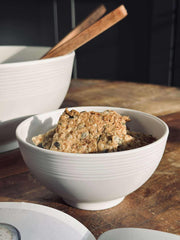 Skålen er laget av melamin, et materiale kjent for sin holdbarhet og letthet. Dette gjør den ideell for daglig bruk, da den er motstandsdyktig mot riper og skader. Melamin tåler også høye temperaturer, noe som gjør skålen trygg å bruke med varme retter. I tillegg er den lett å rengjøre, noe som sparer tid i en travel hverdag.