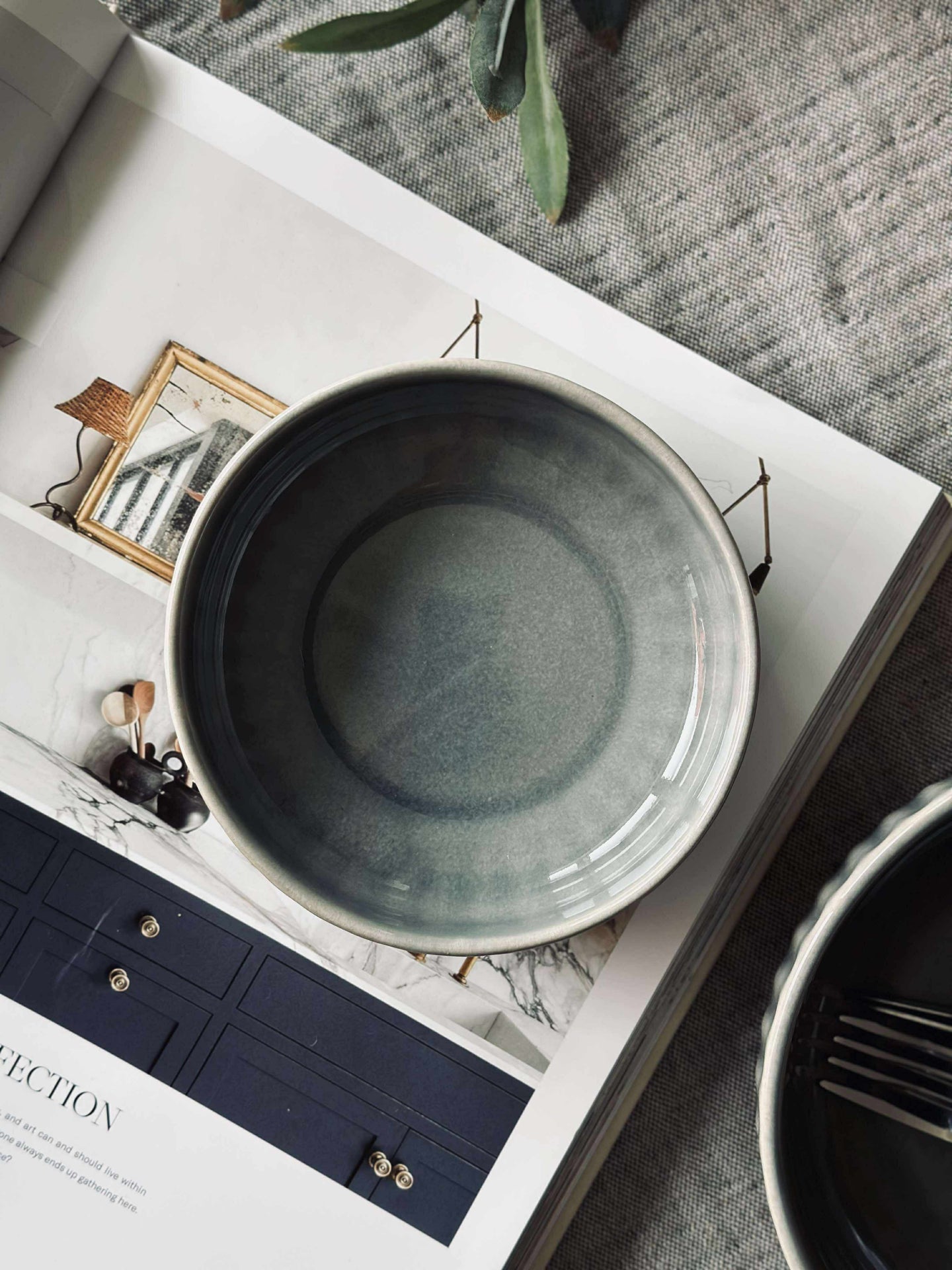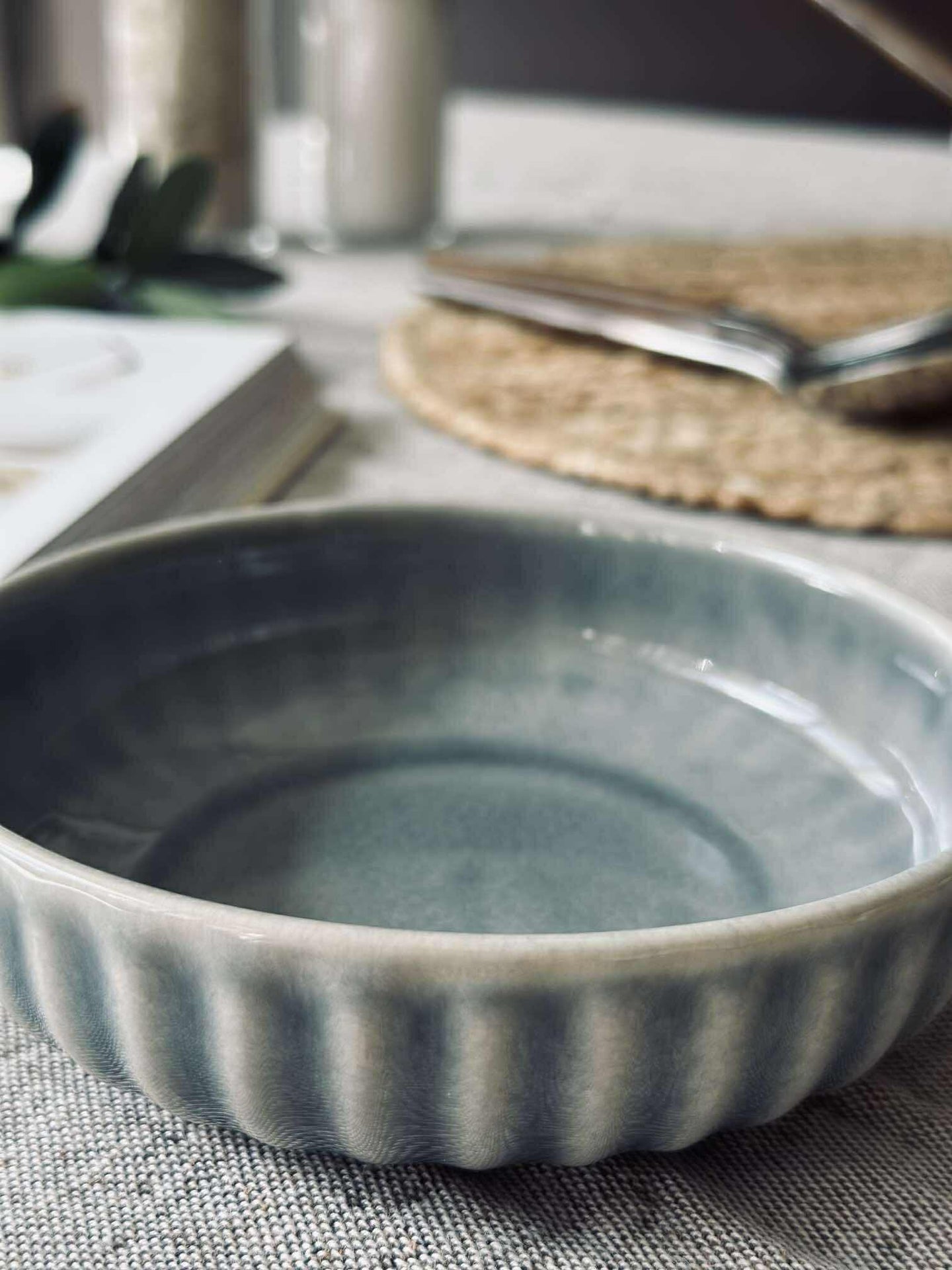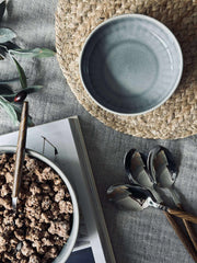 Skålen er laget av ekte stentøy, som gir en naturlig og tidløs estetikk til enhver borddekking. Stentøyets naturlige egenskaper gjør det motstandsdyktig mot riper og skader, noe som sikrer langvarig bruk. Materialets tyngde gir en solid følelse, samtidig som det bidrar til å holde maten varm lenger. Den er ideell for daglig bruk og spesielle anledninger.