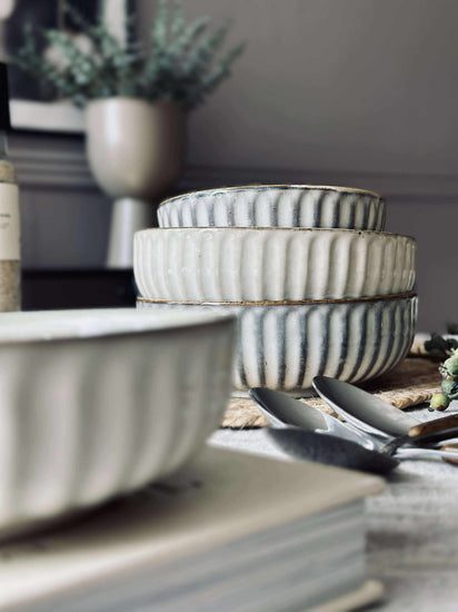 La Bolle VIGA-skålen være den ideelle følgesvennen for dine daglige måltider og skape et vakkert og funksjonelt bord. Oppgrader spiseopplevelsen din i dag med denne tidløse skålen i stripet steintøy!