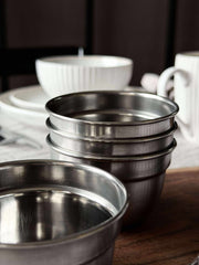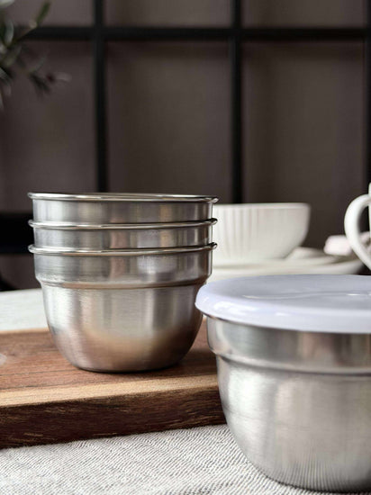 Gjør hverdagen enklere og mer organisert med våre rustfrie stålboller. Ideelle for oppbevaring av små snacks eller middagsrester, disse slitesterke beholderne holder kjøkkenet ryddig og stilfullt. Tenk deg å alltid ha den rette størrelsen for hånden, klar til bruk og enkel å rengjøre.