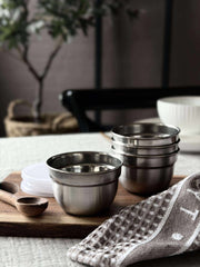 Skålesettet inneholder fire små skåler i ekte rustfritt stål, som gir en holdbar og slitesterk løsning for daglig bruk. Materialet er motstandsdyktig mot flekker og riper, noe som gjør det enkelt å vedlikeholde. Disse skålene er ideelle for servering av ulike retter, samtidig som de gir en moderne og tidløs estetikk til ethvert kjøkken.