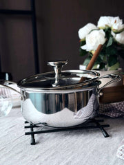 Bordskåneren er laget av 100 % jern, noe som gir en robust og stabil beskyttelse for bordflater. Materialets naturlige styrke sikrer langvarig holdbarhet, samtidig som det tåler høye temperaturer fra varme gryter og panner. Dette gjør den ideell for daglig bruk i hjemmet, og jernets tyngde bidrar til at bordskåneren holder seg på plass under bruk.