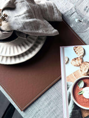 - Dækkeservietten er laget av kunstlær
