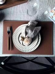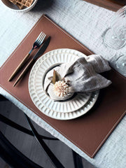 Dækkeservietten laget av kunstlær tilbyr en kombinasjon av stil og praktisk bruk. Kunstlæret gir et moderne utseende, samtidig som det er lett å vedlikeholde. Materialet er slitesterkt og motstandsdyktig mot flekker, noe som gjør det ideelt for daglig bruk. Denne typen materiale gir også en myk overflate som beskytter bordet mot riper og skader.