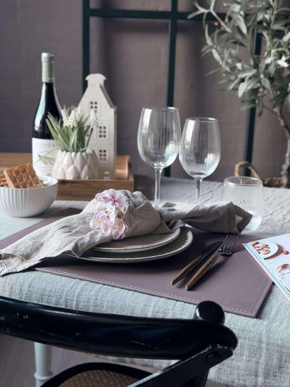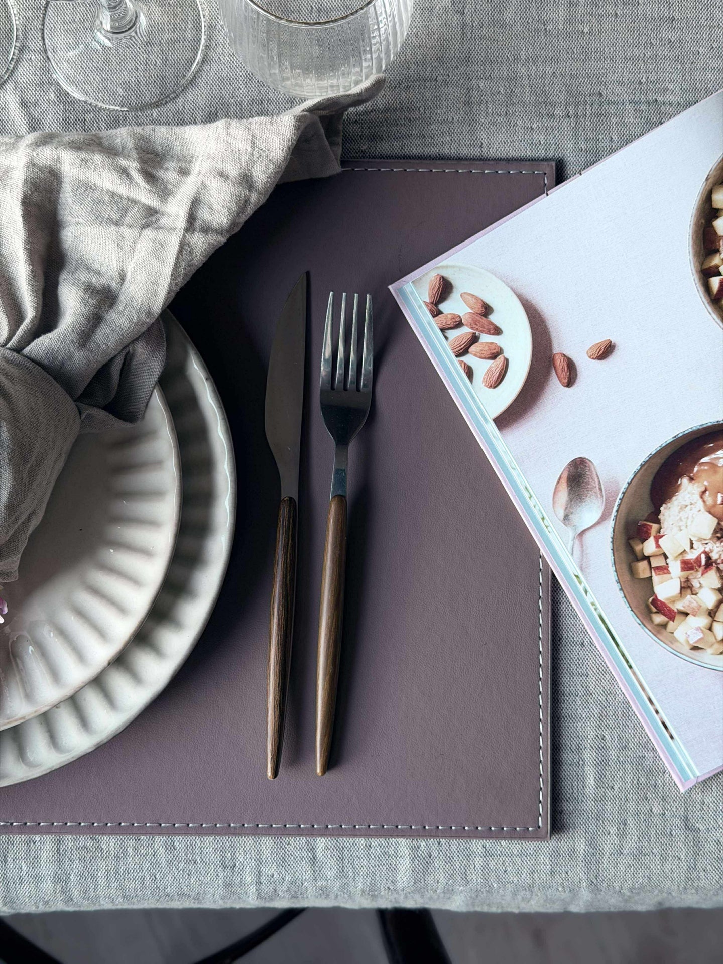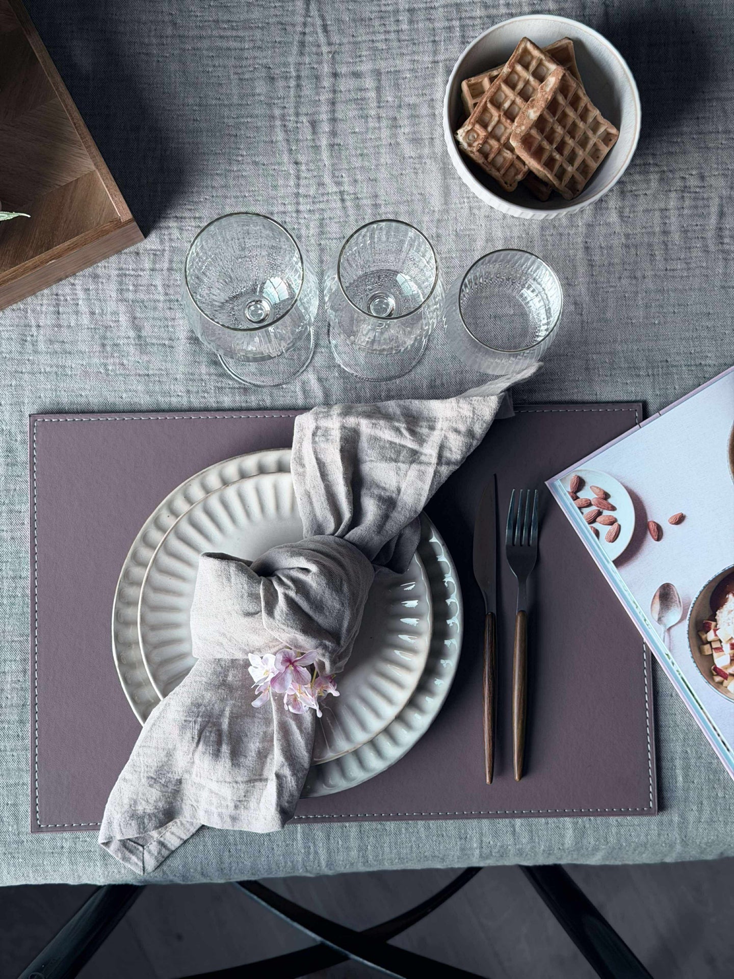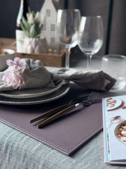 Dekkebrikken, laget av kunstlær, tilbyr en holdbar og lettstelt løsning for spisebordet. Materialet gir en jevn overflate som er enkel å tørke av, noe som gjør det praktisk for daglig bruk. Kunstlæret bidrar også til en stilren estetikk som kan tilpasse seg ulike interiørstiler. Dekkebrikken beskytter bordet mot riper og søl, samtidig som den gir et moderne uttrykk.