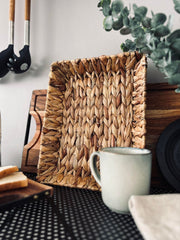 Kurven er laget av ekte vannhyacint, et naturlig materiale som gir et organisk preg til interiøret. Vannhyacint er kjent for sin holdbarhet og fleksibilitet, noe som gjør kurven både robust og formbar. Dette materialet bidrar til å skape en varm og innbydende atmosfære i hjemmet, samtidig som det gir en bærekraftig løsning som respekterer naturen.