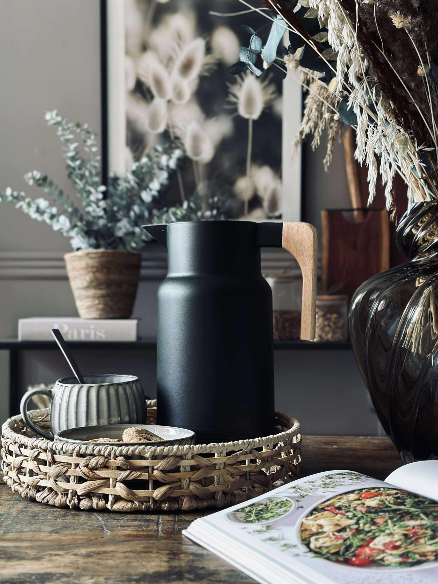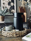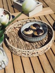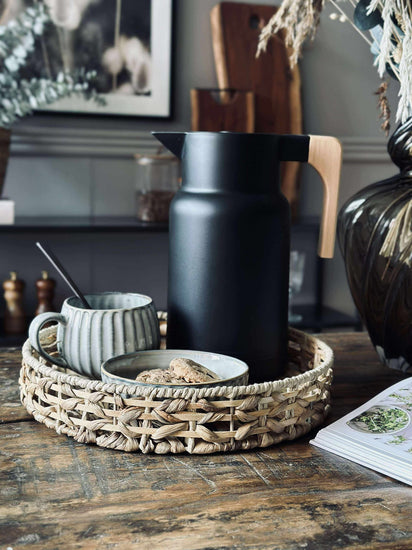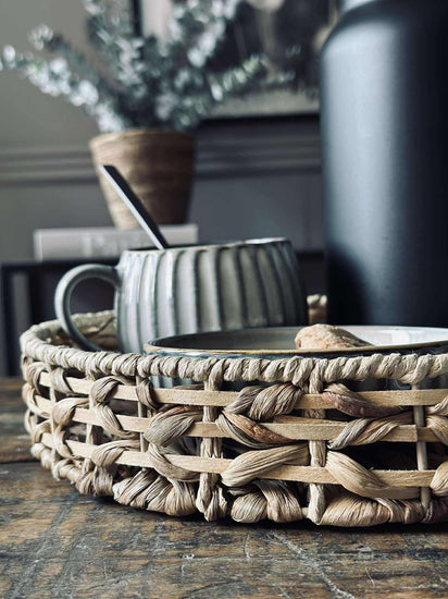 Brettet er laget av ekte vannhyacint, et materiale som ikke bare gir et naturlig og varmt uttrykk, men også bidrar til miljøvennlig produksjon. Vannhyacint er kjent for sin holdbarhet og fleksibilitet, noe som gjør brettet til et pålitelig valg i hjemmet. Materialets tekstur gir en subtil estetikk som lett kan kombineres med ulike stilarter og tilfører rommet et snev av natur.