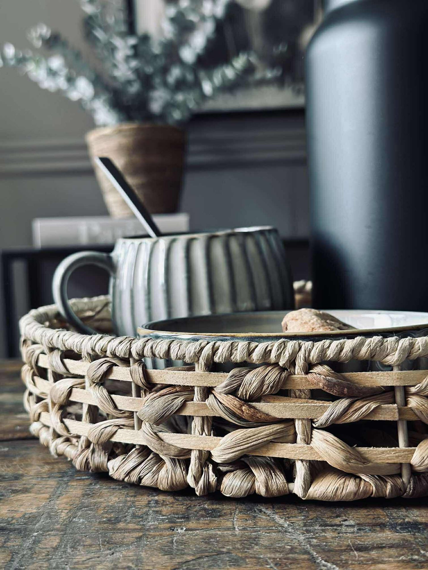 Sliter du med å organisere småting på en stilfull måte? Dette brettet, laget av naturlige materialer, gir en praktisk og estetisk løsning. Det komplementerer ethvert rom og gir en varm tekstur til innredningen, samtidig som det holder ting på plass.