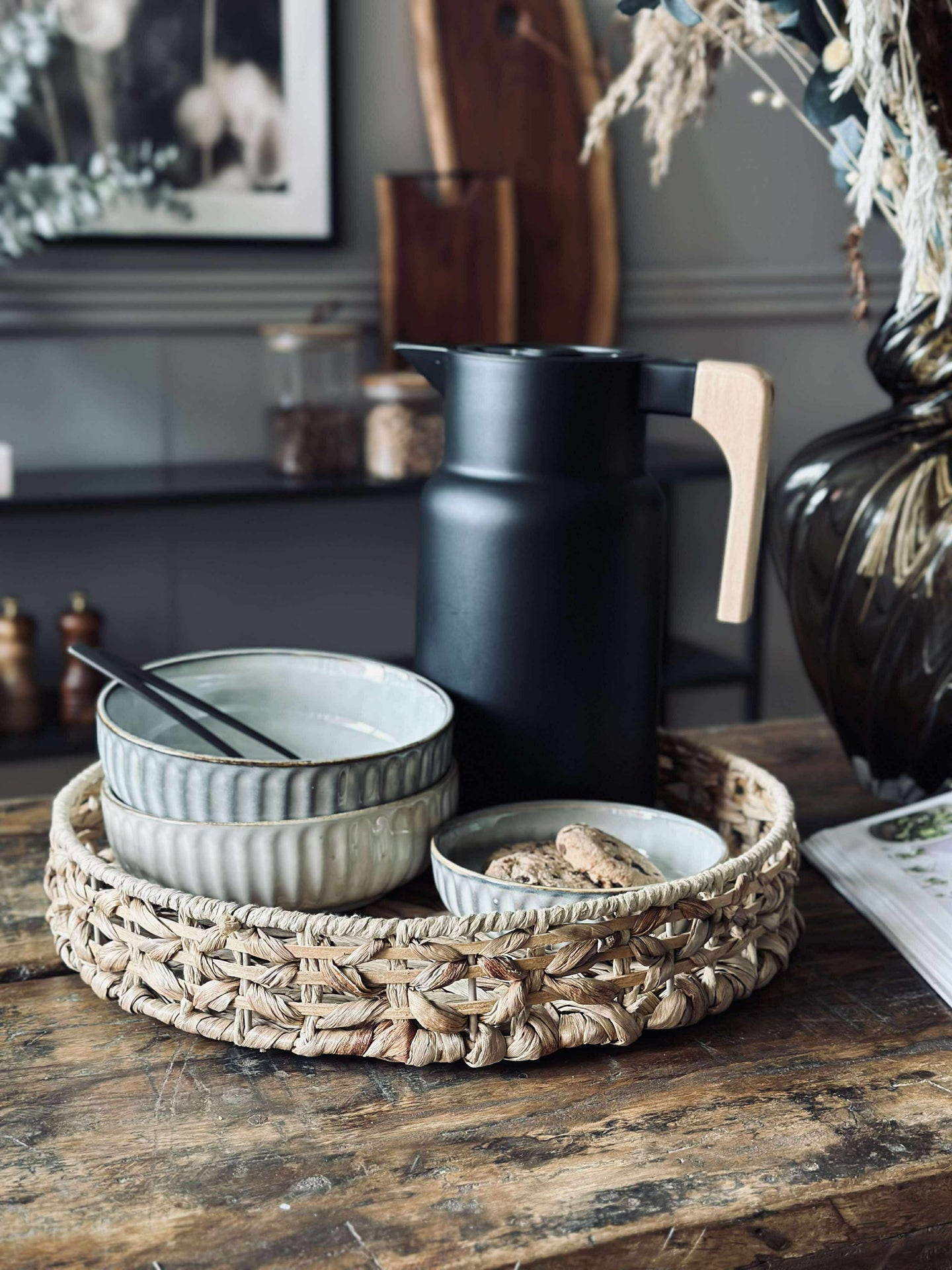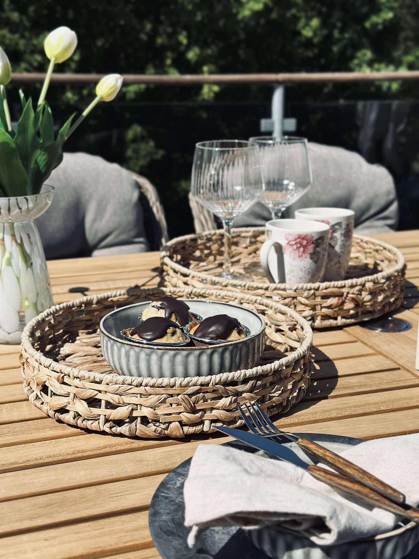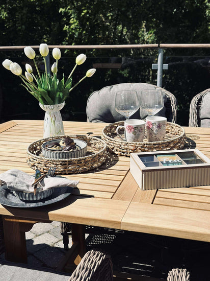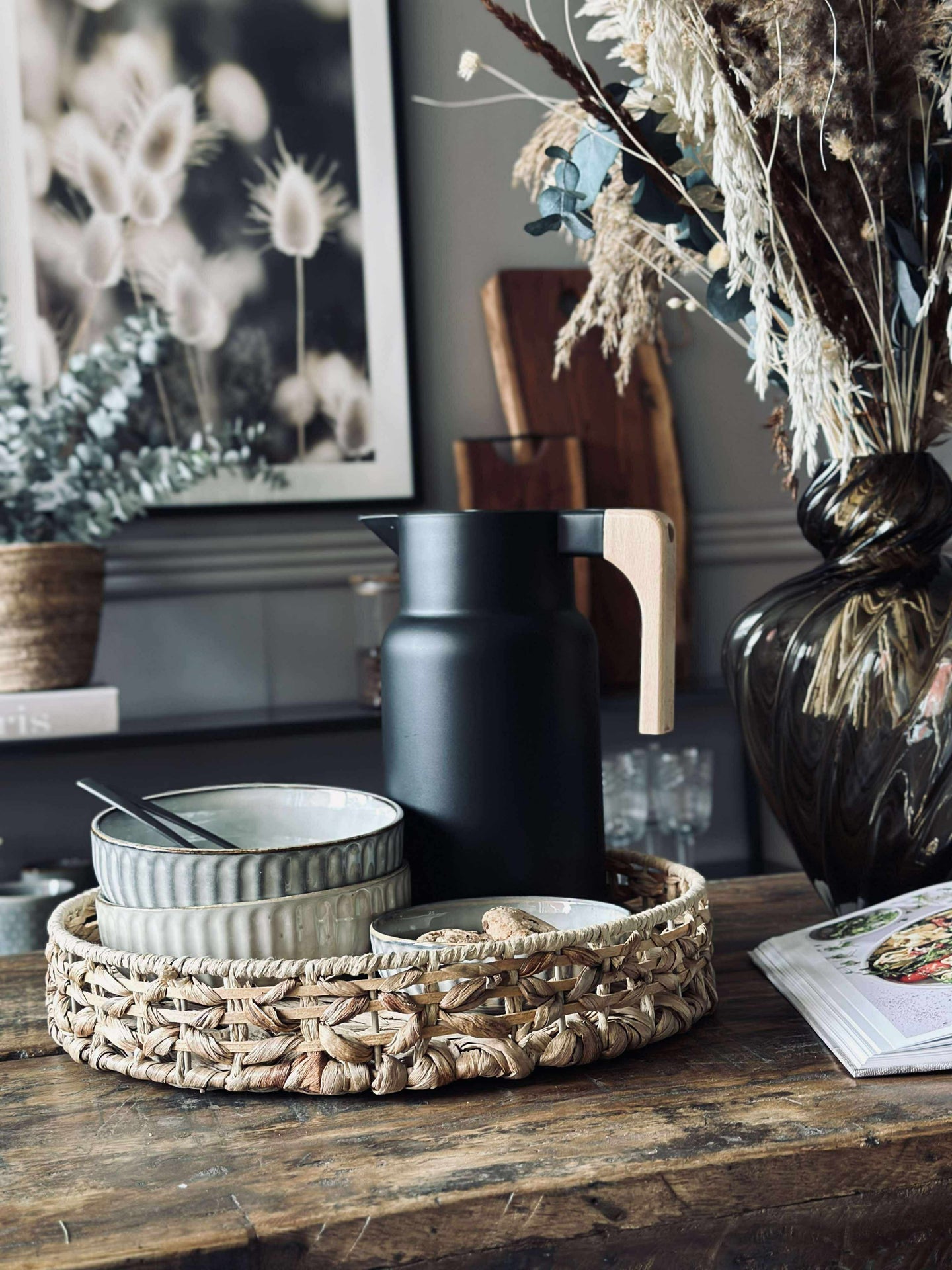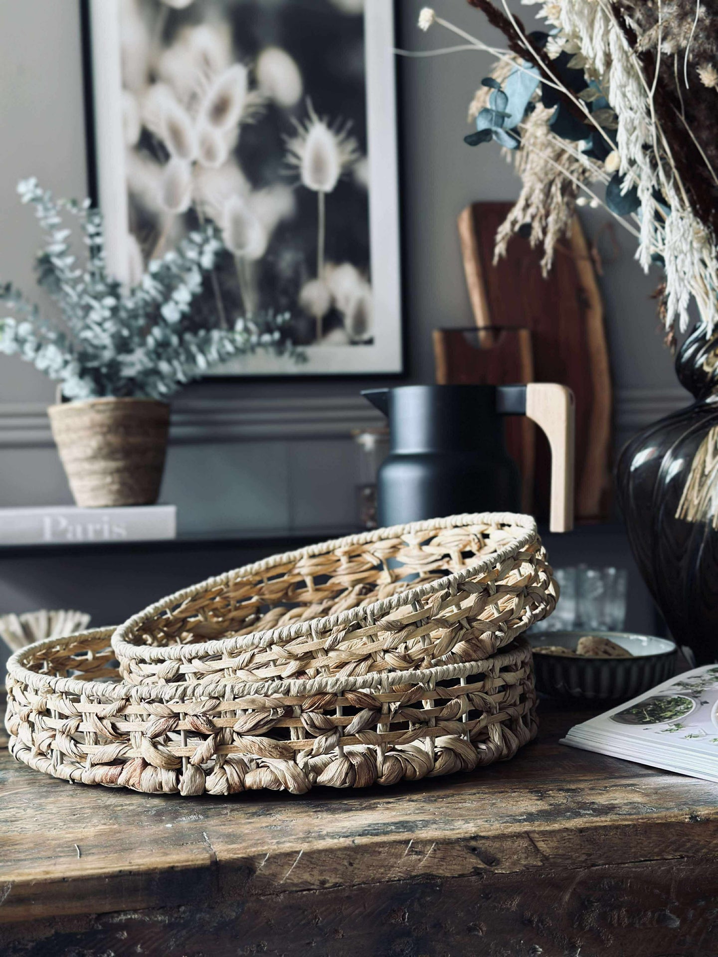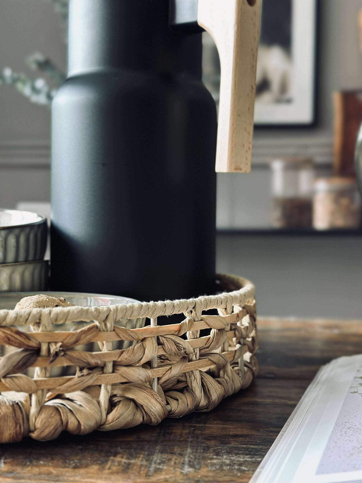 Brettet i vannhyasint tilbyr en naturlig løsning for å organisere små gjenstander i hjemmet. Med sitt stilrene design tilfører det varme og tekstur til interiøret, samtidig som det er praktisk for å samle småting på en dekorativ måte.