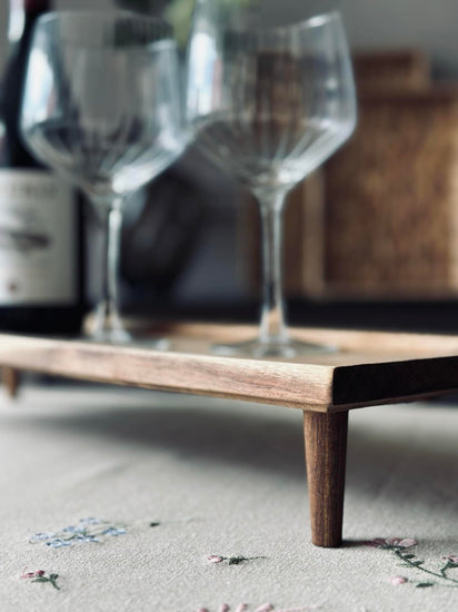 Serveringsbrettet laget av akasietre gir en naturlig og varm følelse til borddekningen. Akasietre er kjent for sin holdbarhet, noe som gjør brettet robust og langvarig. Den naturlige trestrukturen gir hver servering en særpreget karakter, samtidig som den er enkel å rengjøre. Dette gjør brettet ideelt for å presentere tapas og småretter på en innbydende måte.