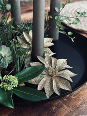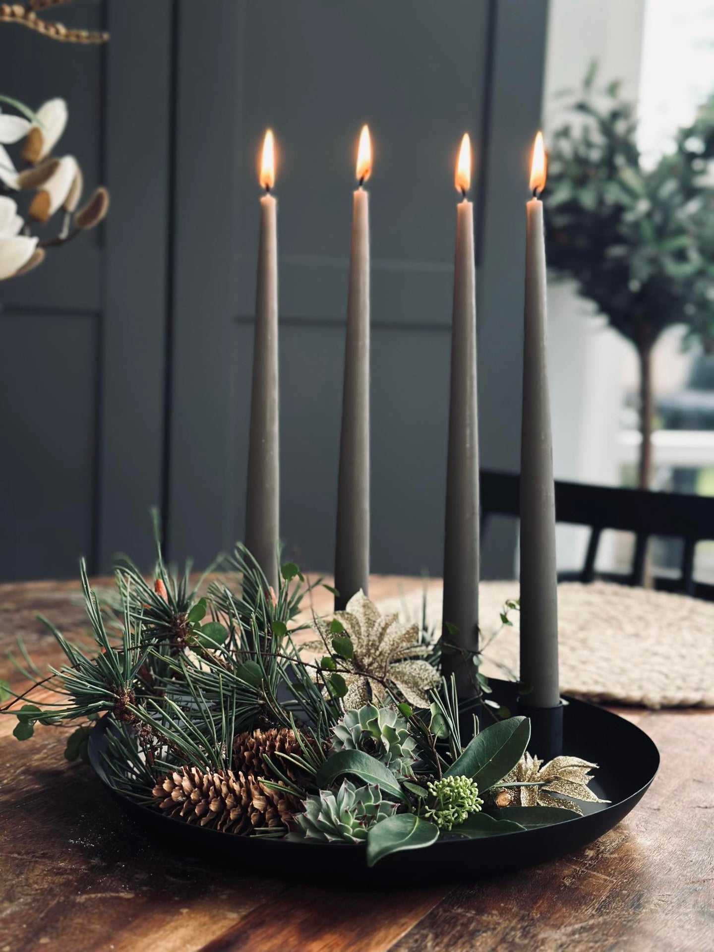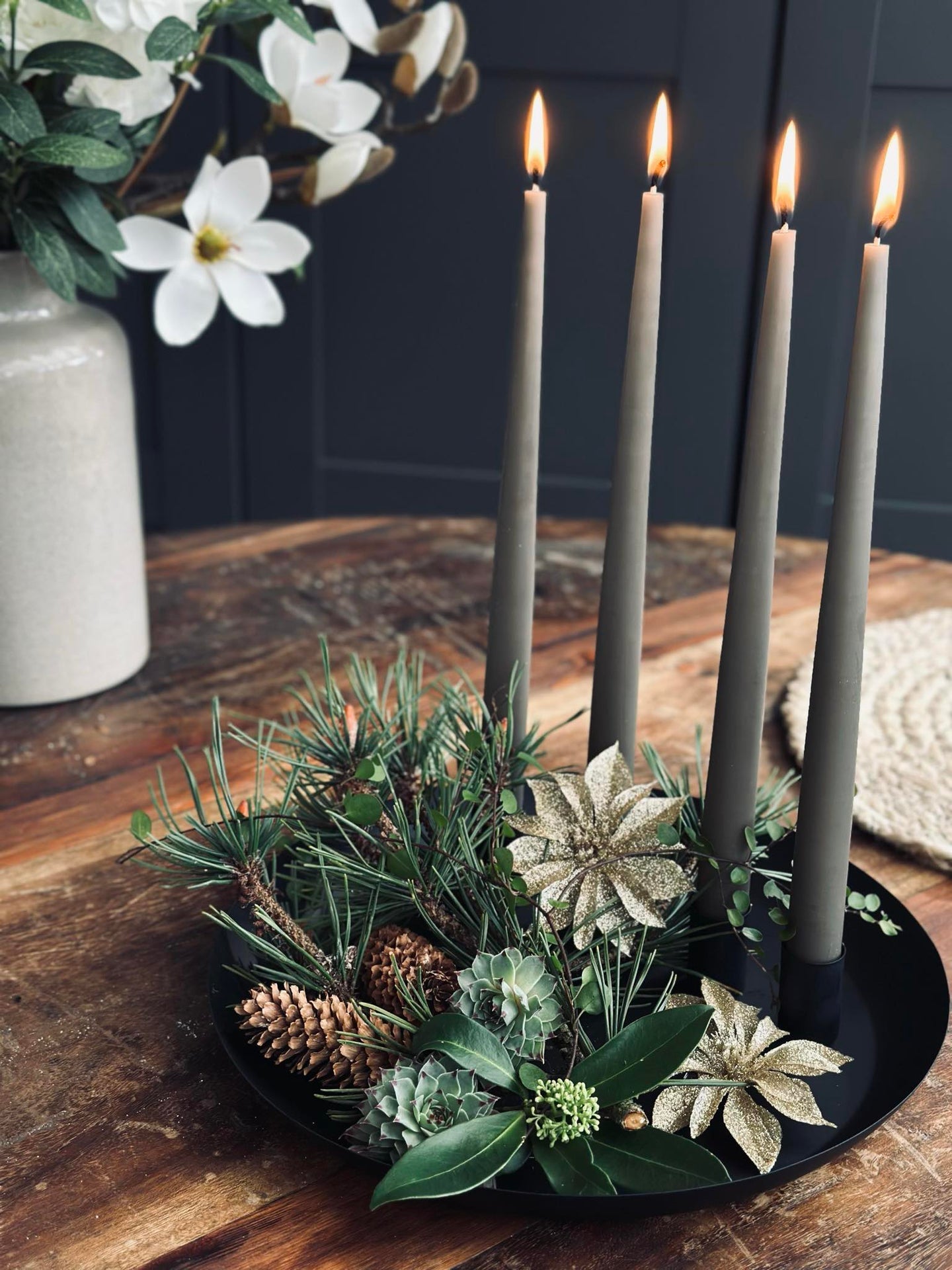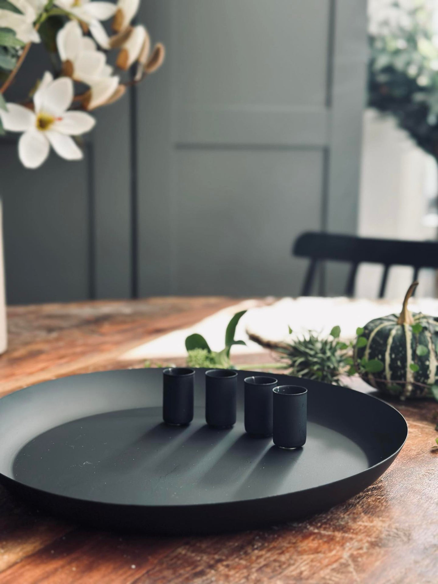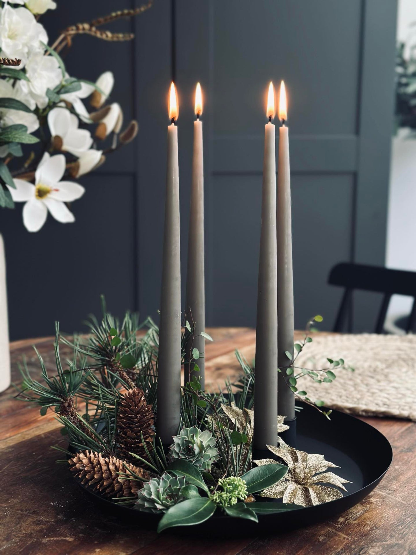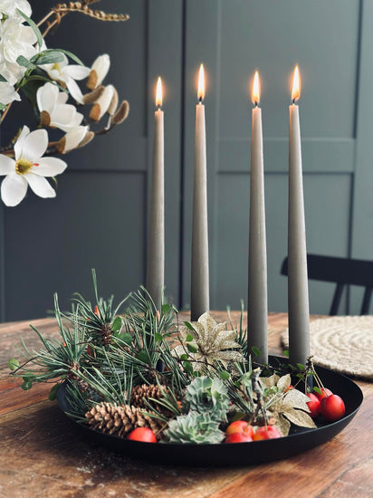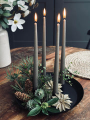 Dette metallbrettet med fire magnetiske lysestaker gir fleksibilitet og stabilitet til enhver oppsetting. De magnetiske stakene gjør det enkelt å justere plasseringen av lysene, noe som gjør det tilpasningsdyktig til ulike rom og anledninger. Metallbrettet fungerer som en solid base og sikrer at lysestakene står stødig. Denne funksjonen kombinerer praktisk bruk med estetisk appell for en stemningsfull atmosfære.