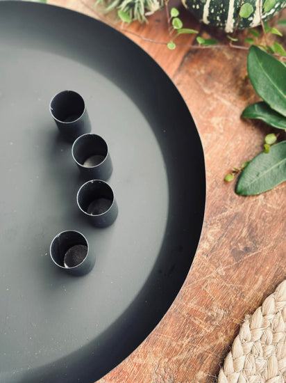 - Metallbrett med fire magnetiske lysestaker