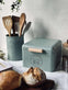 Brødholderen er laget av metall, noe som gir en robust og slitesterk oppbevaringsløsning for daglig bruk. Metallkonstruksjonen beskytter brødet mot ytre påvirkninger og sikrer at det holder seg ferskt lenger. I tillegg gir den en stilren og moderne estetikk som passer inn i de fleste kjøkkenmiljøer. Metallets naturlige egenskaper gjør det enkelt å rengjøre og vedlikeholde.