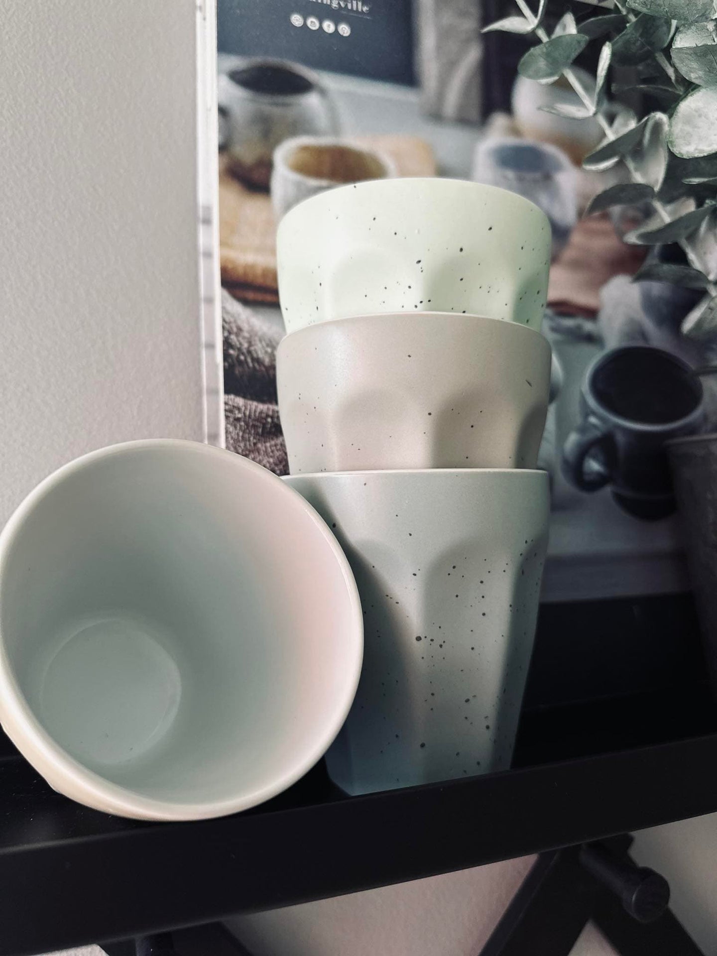 - Kaffekoppene leveres i en kasse med fire forskjellige farger