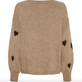 Genseren er laget i akryl og har et trykt mønster med hjerter. Fargen er beige, noe som gjør den enkel å kombinere med både lyse og mørke nyanser.