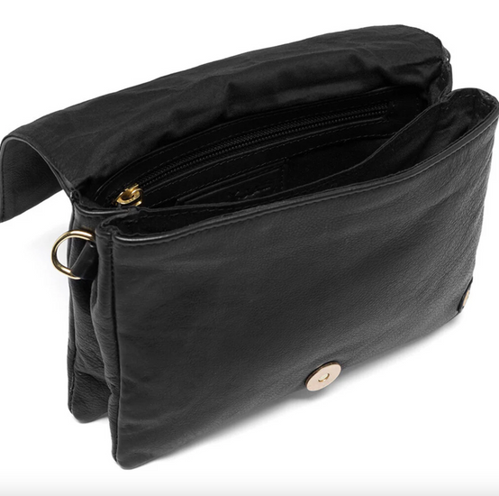 - Lærclutchen lukkes med klaff og magnetisk knapp foran