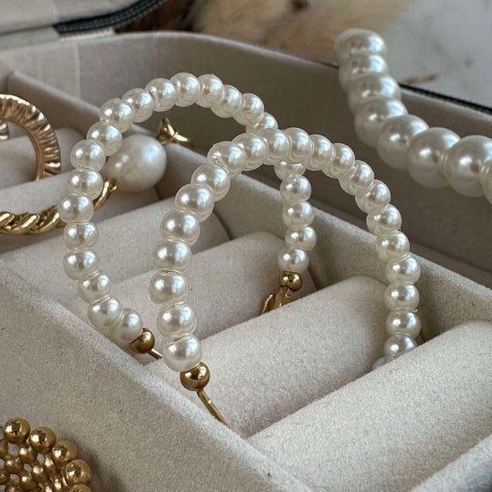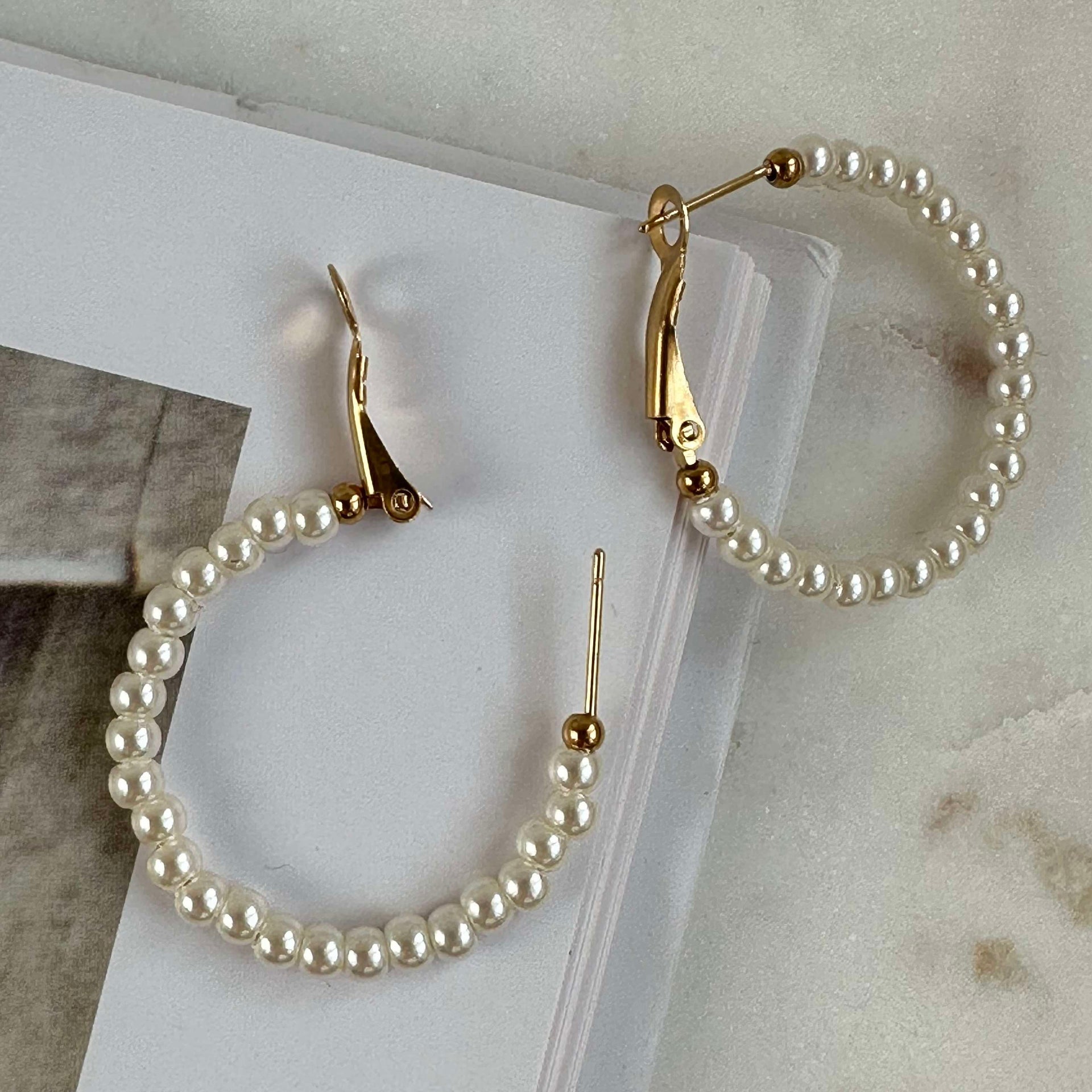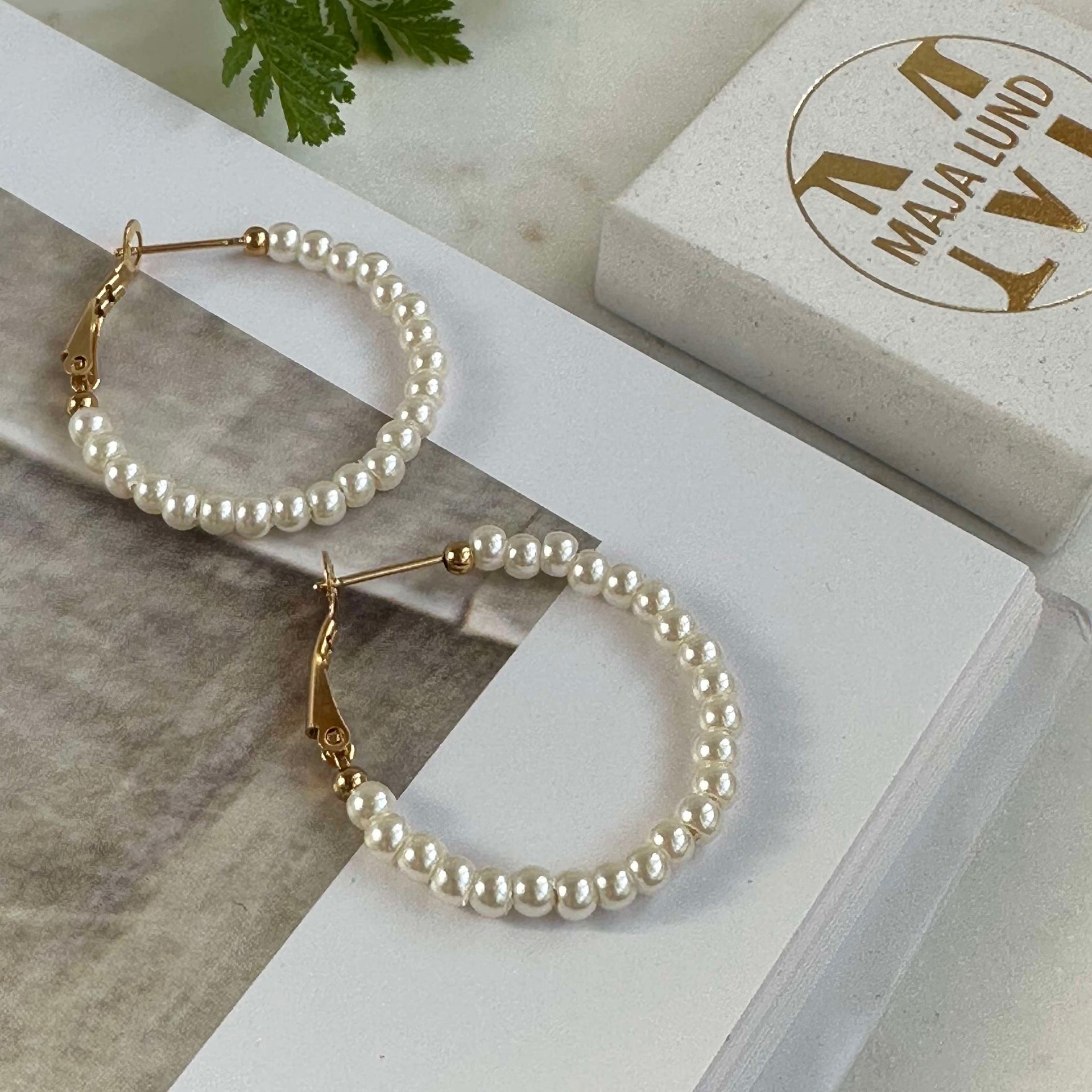 - Øredobbene er lette hoop-øreringer med falske perler