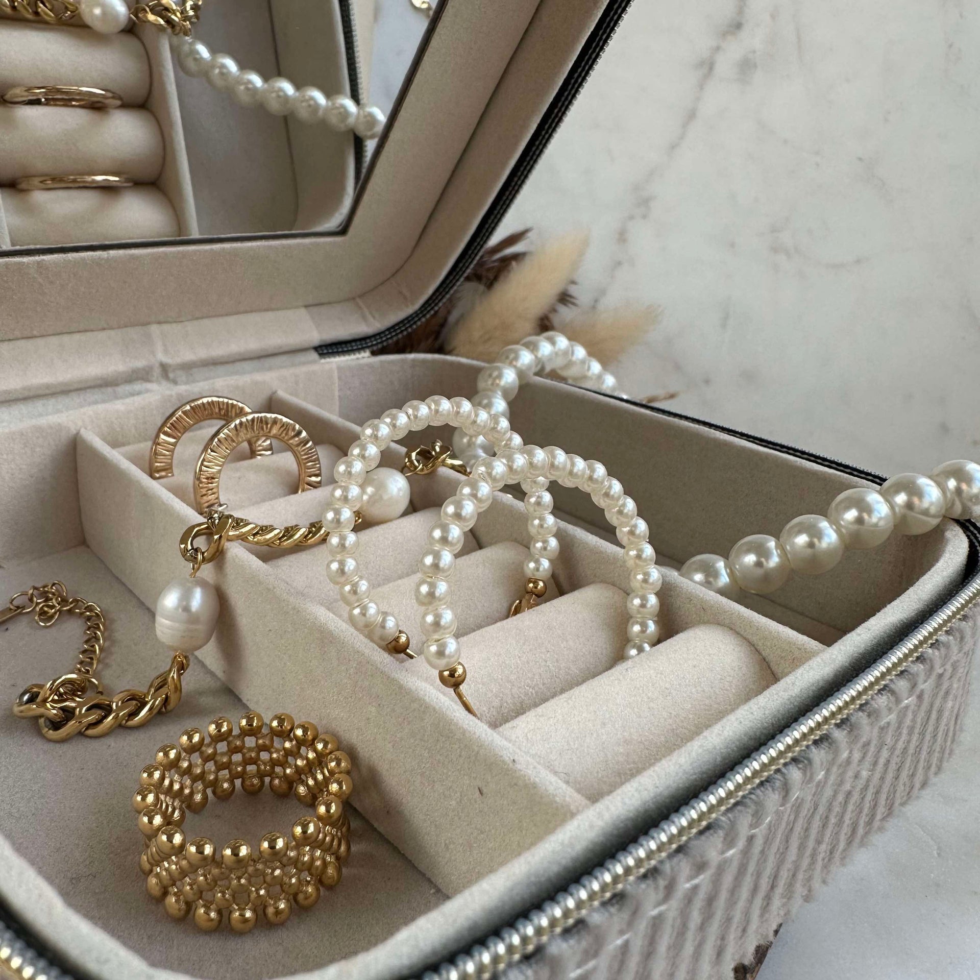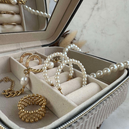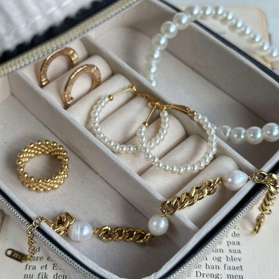 Skap et tidløst uttrykk med Coco 35mm øredobber, og la stilen din skinne gjennom på en subtil måte. Legg til et snev av eleganse til antrekket ditt med disse vakre perlene. Ta stilen din til neste nivå med disse enkle, men raffinerte øredobbene!