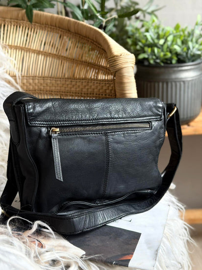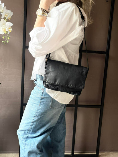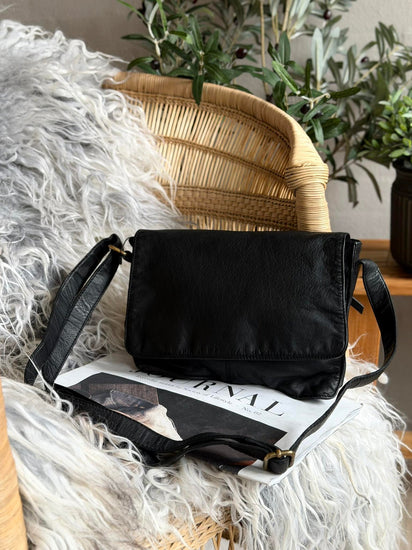 Crossover Mary - Black er en tidløs skulderveske i lær med et klassisk uttrykk og praktiske detaljer. Vesken har ett hovedrom med en innvendig glidelåslomme samt en kortholder med plass til tre kort. Den lukkes med klaff, og den justerbare skulderremmen gjør den behagelig å bære.