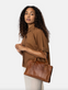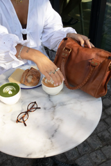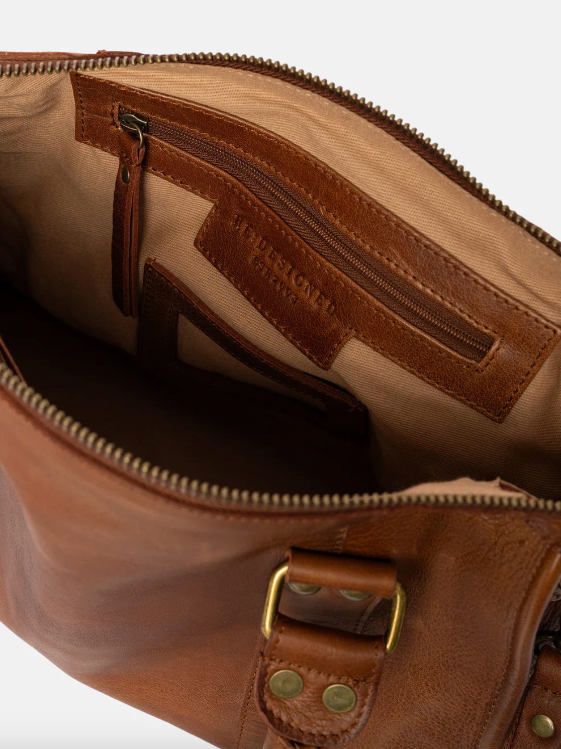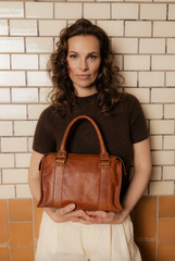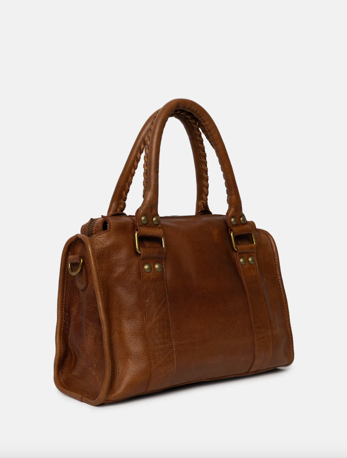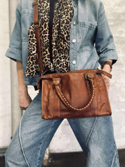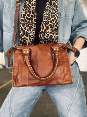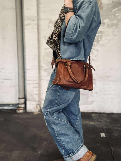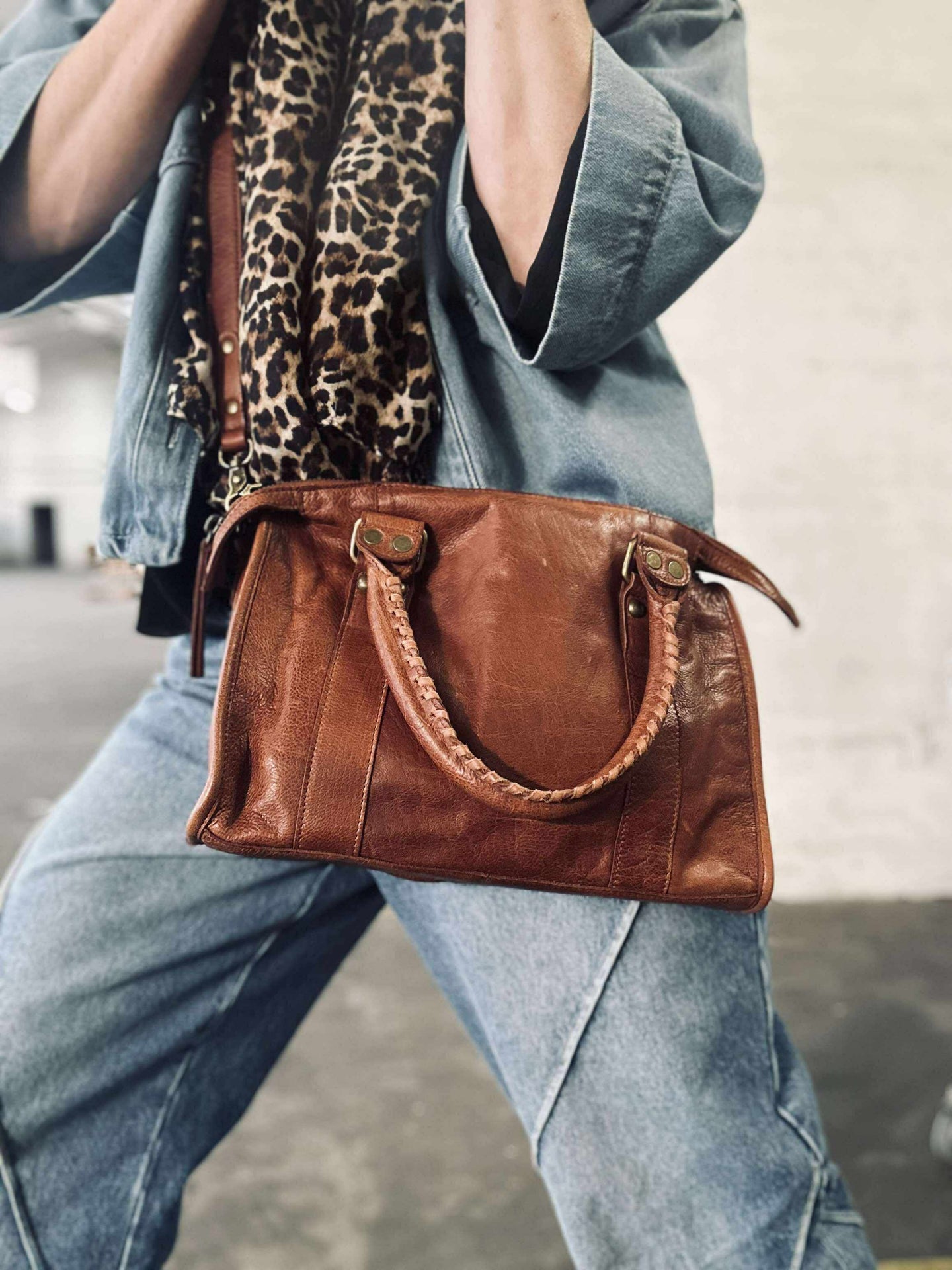 Håndvesken er laget av urban læderkvalitet, et naturlig, slebet ku-lær som bevarer det originale åremønsteret. Denne typen lær gir vesken en autentisk og tidløs karakter, samtidig som den sikrer holdbarhet og langvarig bruk. Åremønsteret tilfører en særpreget tekstur, som gjør hver veske spesiell, og gir brukeren en følelse av kvalitet.