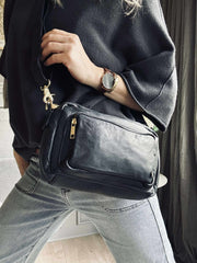 - Markant lynlåslomme på fronten av crossbody-vesken