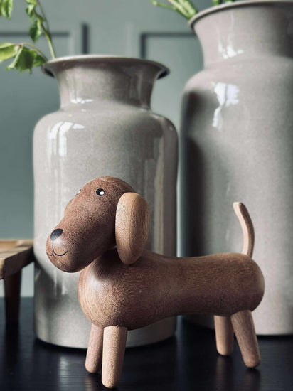 Materialet som brukes i hund i tre er succitræ, kjent for sin holdbarhet og naturlige estetikk. Succitræ gir en varm og innbydende følelse, samtidig som det er robust nok til å tåle daglig bruk. Dette materialet sikrer at produktet beholder sin form og farge over tid, noe som gjør det til et varig tillegg i ethvert hjem.