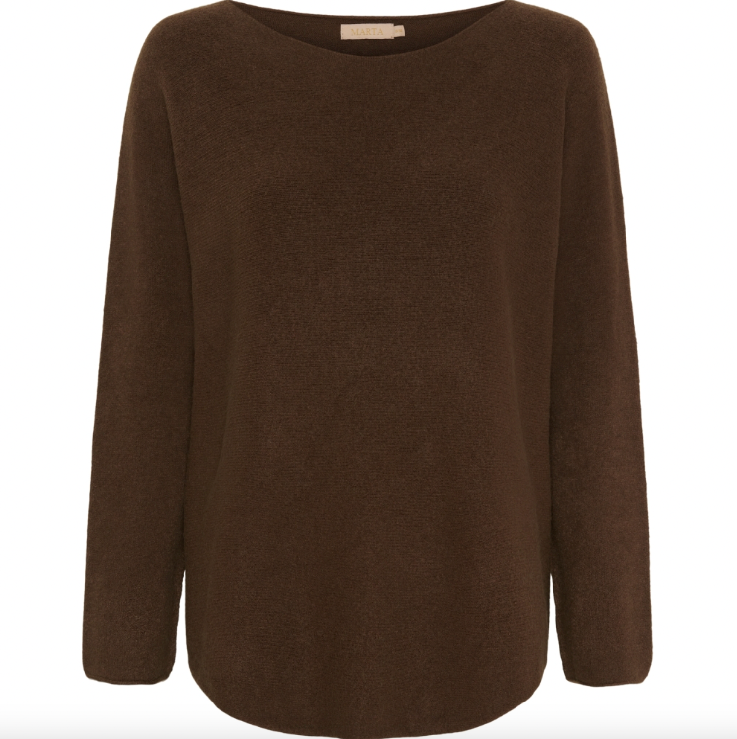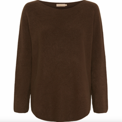 Dagmar er en deilig myk strikket bluse med båthals i en ensfarget brun nyanse og regular passform. Kjenner du SIA-blusen, er kvaliteten den samme – forskjellen er at Dagmar-blusen har lengre ermer. Et enkelt uttrykk, som gjør den enkel å sette sammen med resten av garderoben.