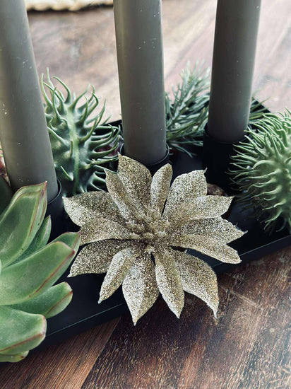 Trenger du et enkelt og stilfullt tilskudd til festdekorasjonen din? Disse dekorblomstene er ideelle for å skape en sofistikert atmosfære uten mye bry. Praktiske å plassere, gir de et subtilt glimt til ethvert rom eller arrangement.