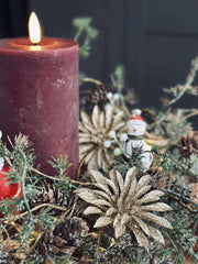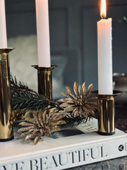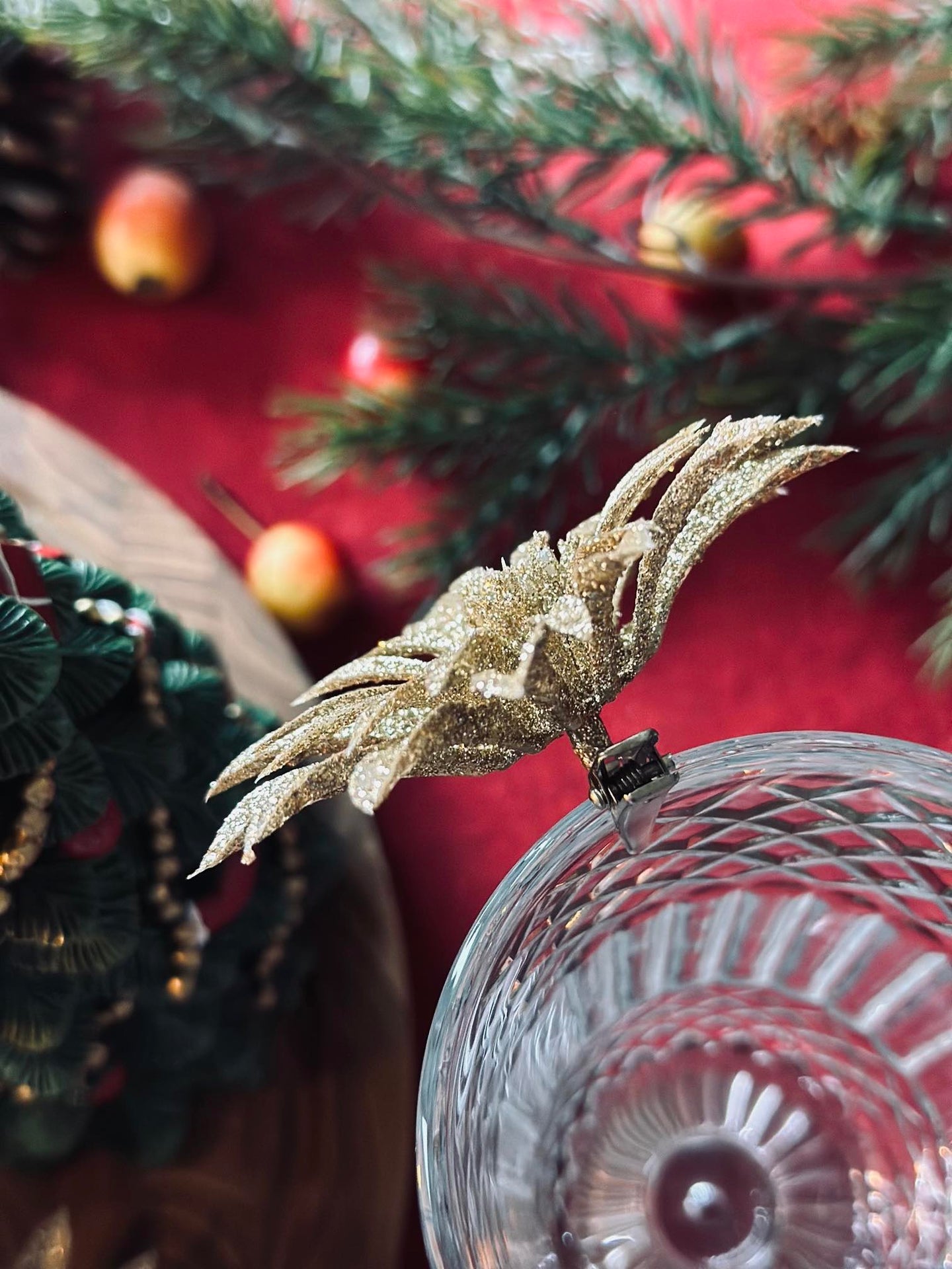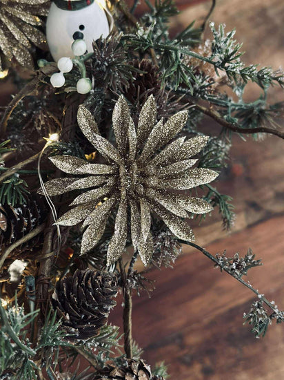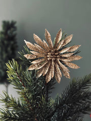 Dekorblomster i gull med glitter tilfører et luksuriøst preg til ethvert rom. Den glitrende overflaten reflekterer lyset på en måte som skaper en varm og innbydende atmosfære. Gullfargen bidrar til en følelse av rikdom og eleganse, samtidig som den enkelt kan kombineres med ulike interiørstiler. Denne fargen og teksturen kan gi rommet et sofistikert uttrykk uten å dominere det.