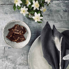 • Dipskålen er laget av matt grått stentøy i lys stein