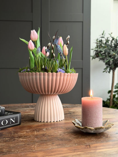 Skap en dekorativ DIY-oppsats med dette settet i betong-look i rosa. Du får en bowl og en potte, som sammen gir et rolig, moderne uttrykk. Bowl og potte har ikke helt samme farge, og den lille nyanseforskjellen tilfører oppsatsen et levende og gjennomført uttrykk.