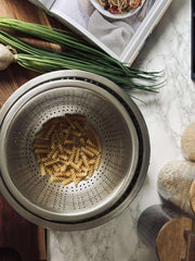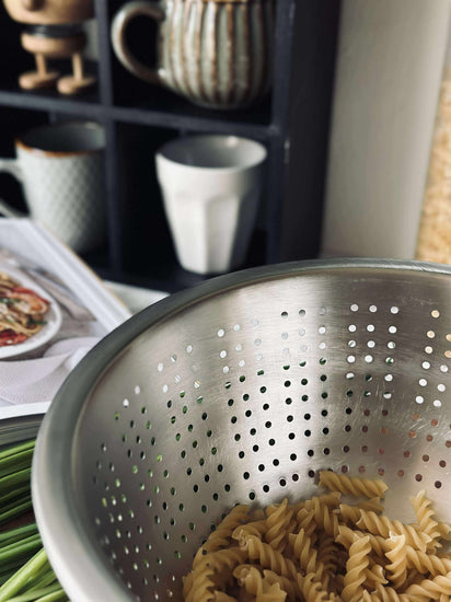 Har du noen gang slitt med å sile pasta eller grønnsaker effektivt? Vårt dørslag løser dette problemet ved å gi deg en pålitelig løsning som er enkel å rengjøre. Unngå søl, og nyt en smidigere matlaging hver dag.