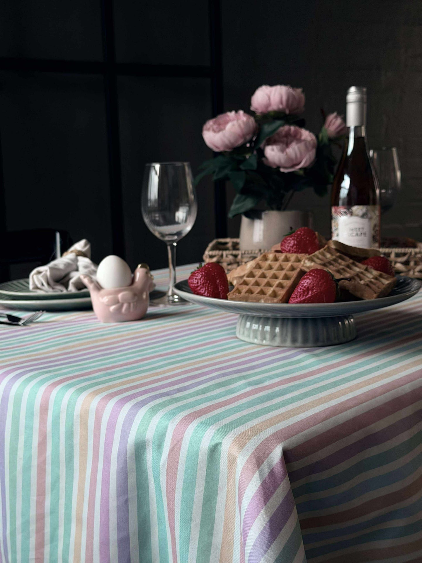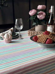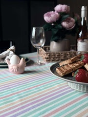 Forvandle dine hverdagslige måltider til spesielle øyeblikk med 'Duk - Pastellstriper'. Opplev enkelheten i et vakkert dekke som tåler daglig bruk. La denne duken bli din elegante løsning for å skape en innbydende atmosfære uten å ofre praktisk vedlikehold. Gjør hvert måltid til en fest.