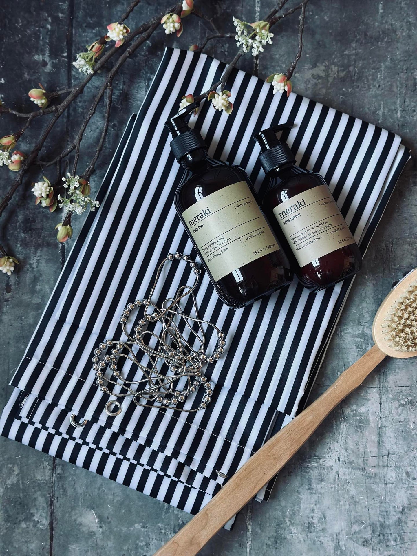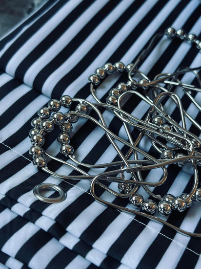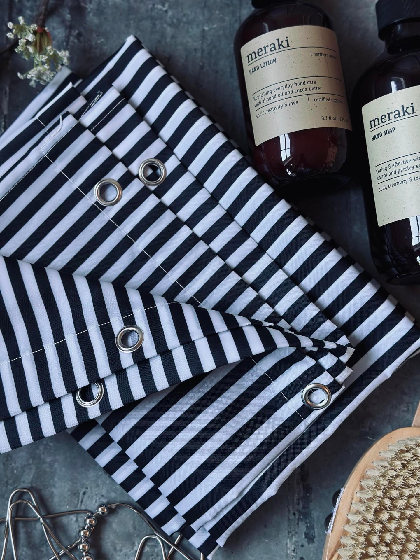 Oppgrader ditt baderom i dag med Dusjforheng - Svart stripe og si farvel til vannsprut på gulvet. Nyt et tørt og stilig bad hver dag – enkelt og praktisk. Ta vare på baderommet ditt med denne funksjonelle løsningen!