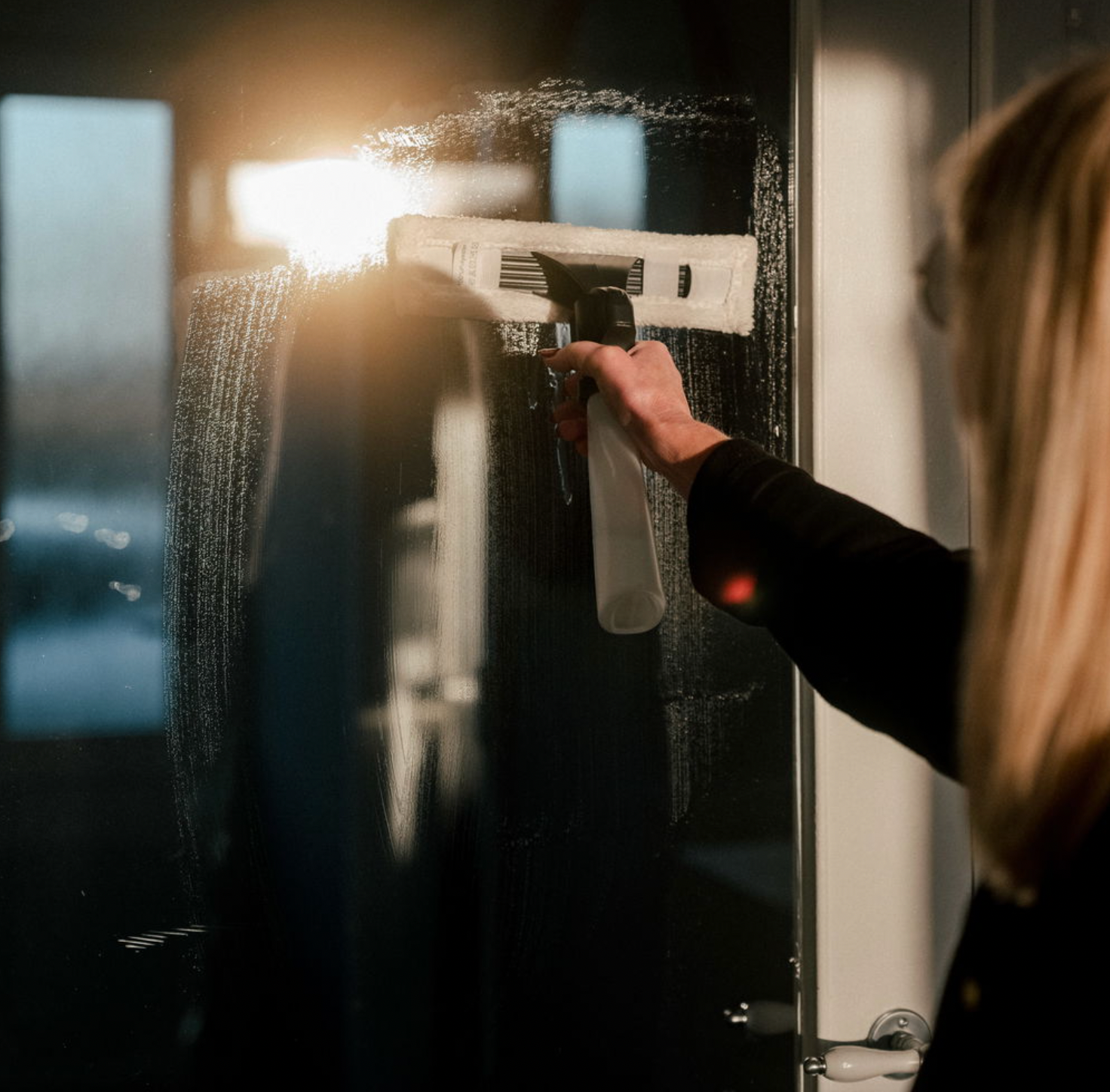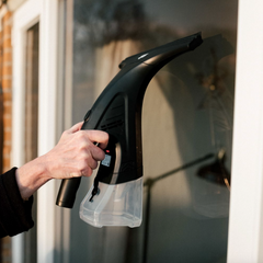Vindusvaskeren leveres med en praktisk vannbeholder, et avtørkingshode og en mikrofiberklut, som sammen sikrer en grundig rengjøring av overflater. Vannbeholderen gjør det enkelt å fukte overflatene, mens avtørkingshodet og mikrofiberkluten sørger for effektiv fjerning av smuss og striper. Dette systemet gir en jevn og skånsom rengjøring, noe som gjør det lettere å vedlikeholde et rent og innbydende hjem.
