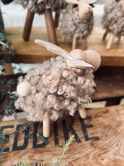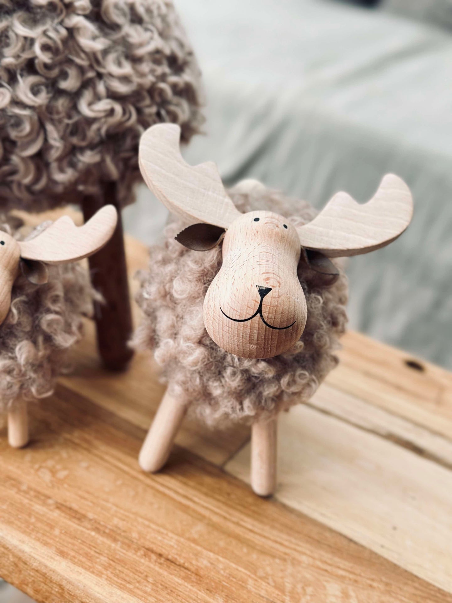 Elgfiguren er laget av massiv bøk, som gir en robust og solid følelse. Dette materialvalget sikrer at figuren har en varig holdbarhet, noe som gjør den til et pålitelig valg for langvarig dekorasjon. Bøkens naturlige trekorn gir et subtilt og tidløst utseende som kan passe inn i ulike interiørstiler. Den naturlige styrken i bøk bidrar også til å opprettholde figurens form og detaljer over tid.
