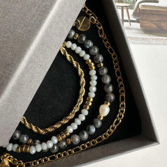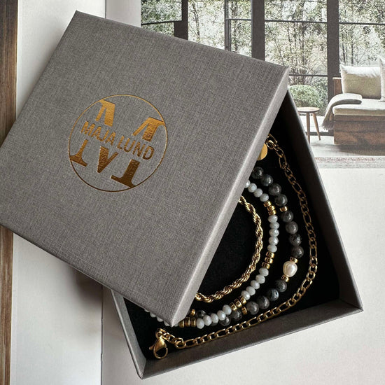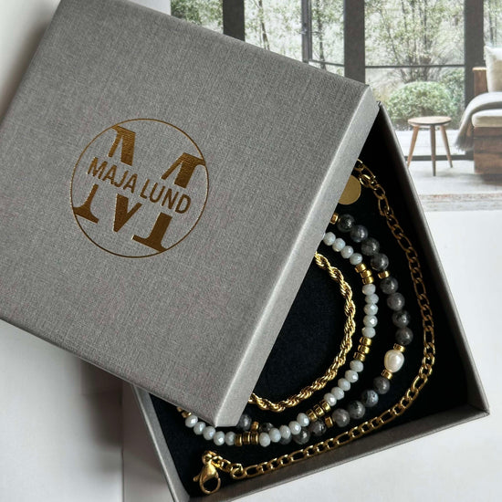 Leter du etter det lille ekstra til antrekket ditt? Erika Stone Smykke-settet tilbyr variasjon og fleksibilitet med fire forskjellige armbånd. Enten du ønsker en hverdagslig stil eller noe mer spesielt, gir dette settet deg muligheten til å tilpasse looken din enkelt.