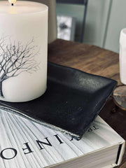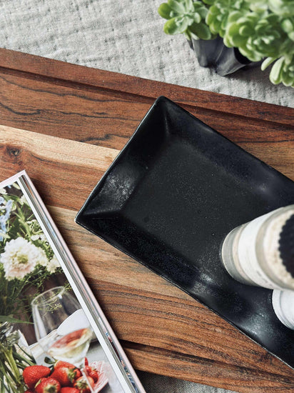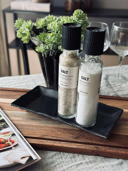 Fatet er laget av svart stentøy, noe som gir det en robust og slitesterk karakter. Dette materialet tåler daglig bruk og bevarer sin kvalitet over tid. Den mørke fargen gir en tidløs estetikk som passer inn i ulike interiørstiler, samtidig som den gir en følelse av ro og balanse. Stentøyets naturlige tekstur skaper en behagelig taktil opplevelse.