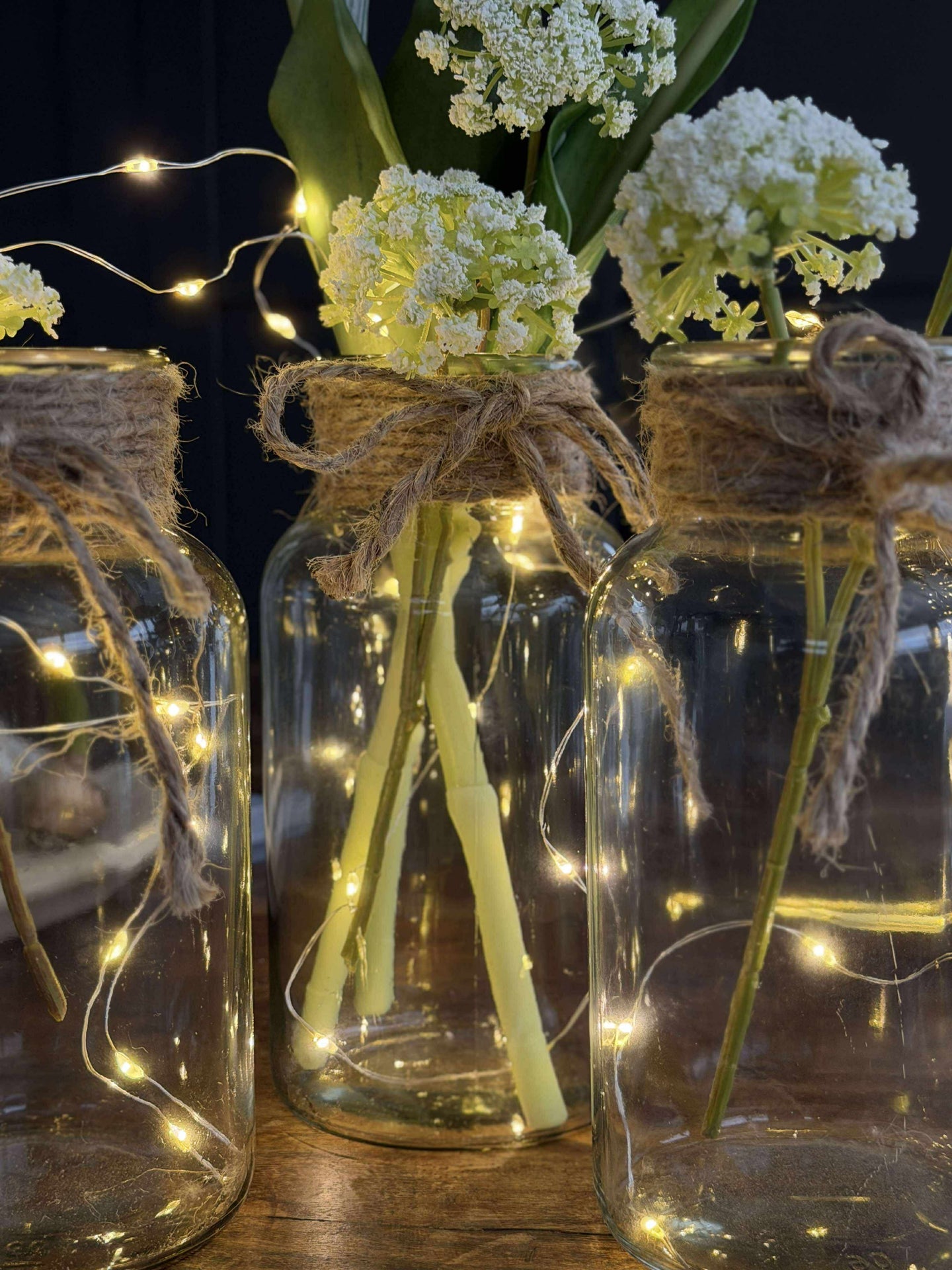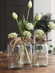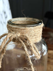 Glassvasen med snor er laget av ekte glass, noe som gir den en tidløs og naturlig skjønnhet. Det klare glasset lar lyset stråle gjennom, noe som skaper en lys og innbydende atmosfære i rommet. Materialets holdbarhet sikrer at vasen beholder sitt utseende over tid og gir et solid fundament for blomsterarrangementer eller dekorative elementer.