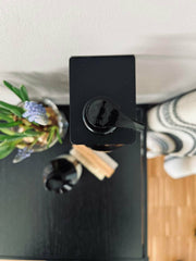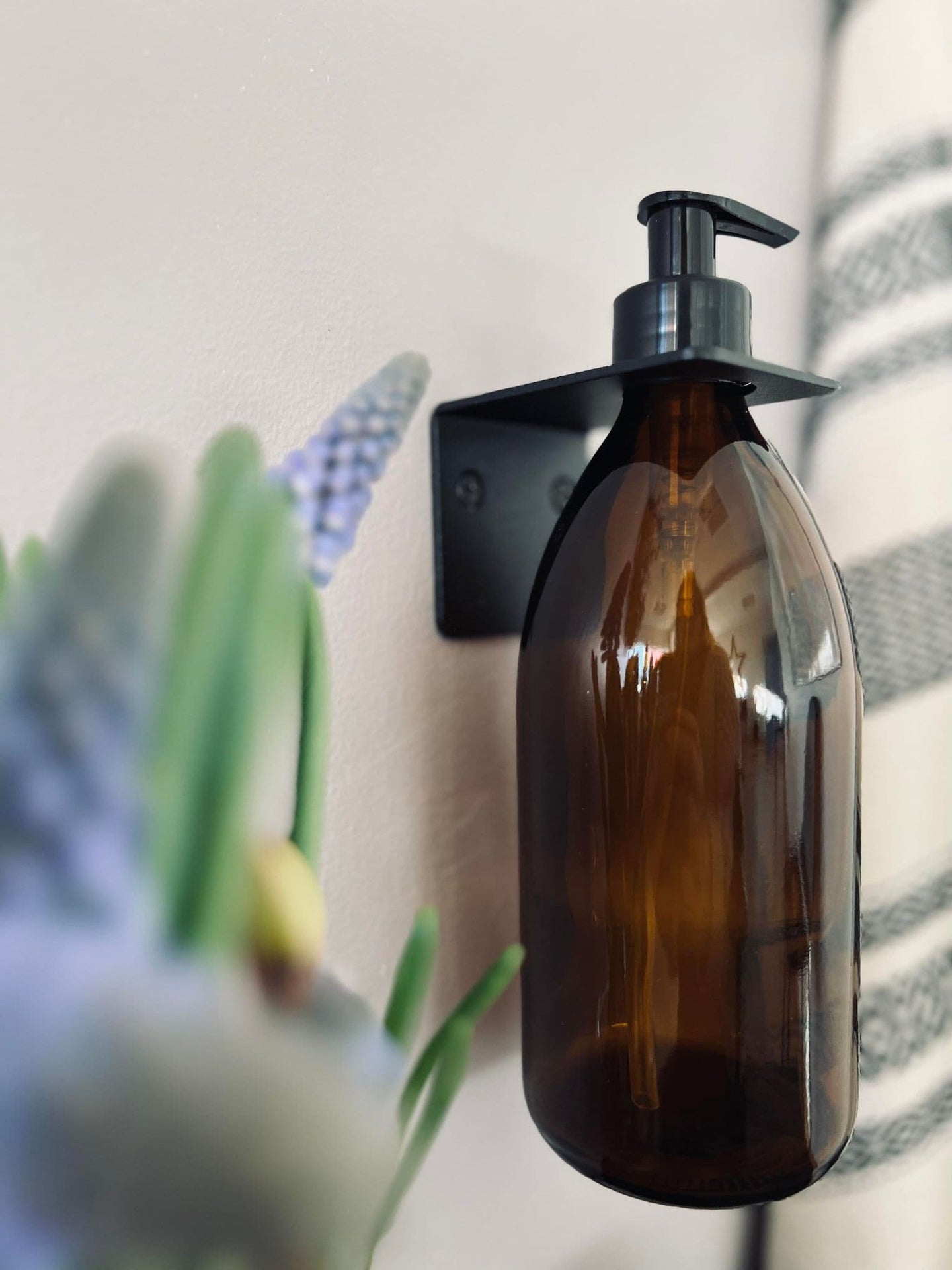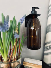 Flaskeholderen er laget av høykvalitets, svart, pulverlakkert jern, som gir både robusthet og en moderne estetikk til baderommet ditt. Dette materialvalget sikrer langvarig holdbarhet, samtidig som det motstår rust og slitasje. Den stilrene svarte finishen gjør at flaskeholderen enkelt kan integreres i ulike interiørstiler, og den solide konstruksjonen gir trygg oppbevaring av flaskene dine.